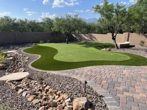 Low-maintenance synthetic grass installations, decorative rock, and custom landscape features that elevate your outdoor space year-round.